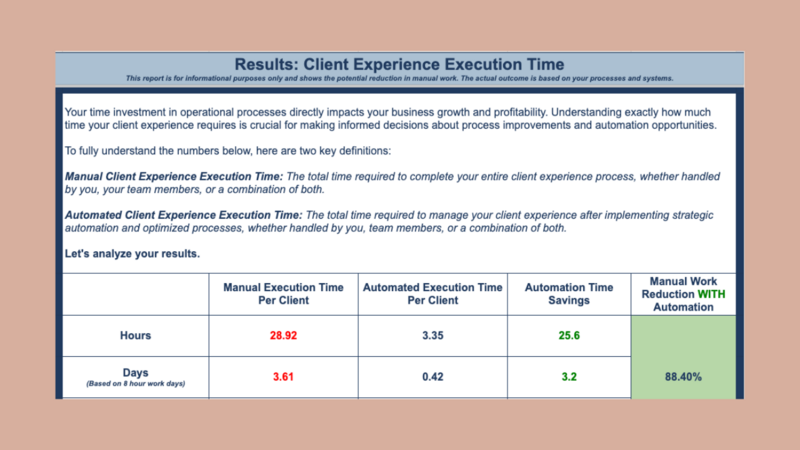 “As a business owner, I'm always looking for ways to improve my operations and client experience. The Strategic Operations Calculator was incredibly helpful in both areas! It provided clear guidance on how to streamline my processes, leverage automation and delegation, and ultimately, design a truly client-focused experience. What I loved most was that it helped me see the gaps in my current client journey and gave me concrete steps to fill them. If you're serious about creating raving fans and taking your business to the next level, I highly recommend investing in this resource.”